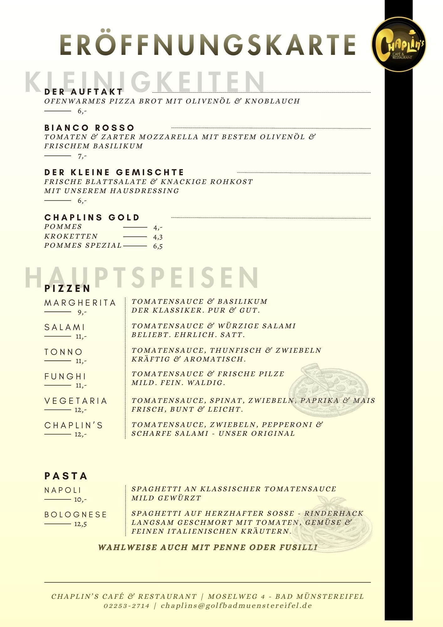 Merkt Euch auch gerne bereits den 21. März im Kalender vor. Dann wollen wir mit Euch unser GRAND OPENING des Chaplin's feiern. Weitere Details werden wir in Kürze folgen auf usneren Instagram (chaplins.restaurant) und Facebookseiten (Chaplins.cafe.restaurant) bekannt geben.
